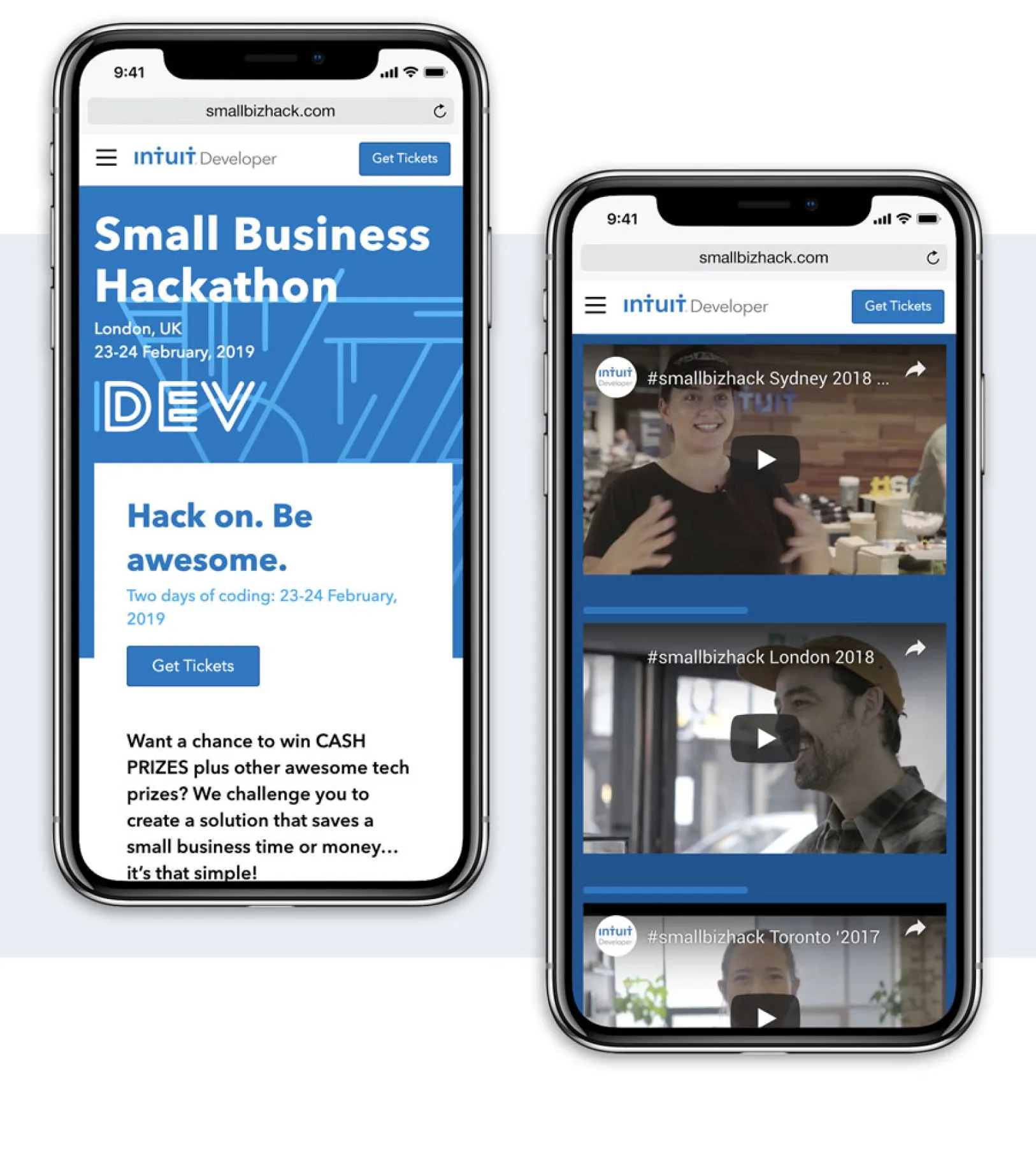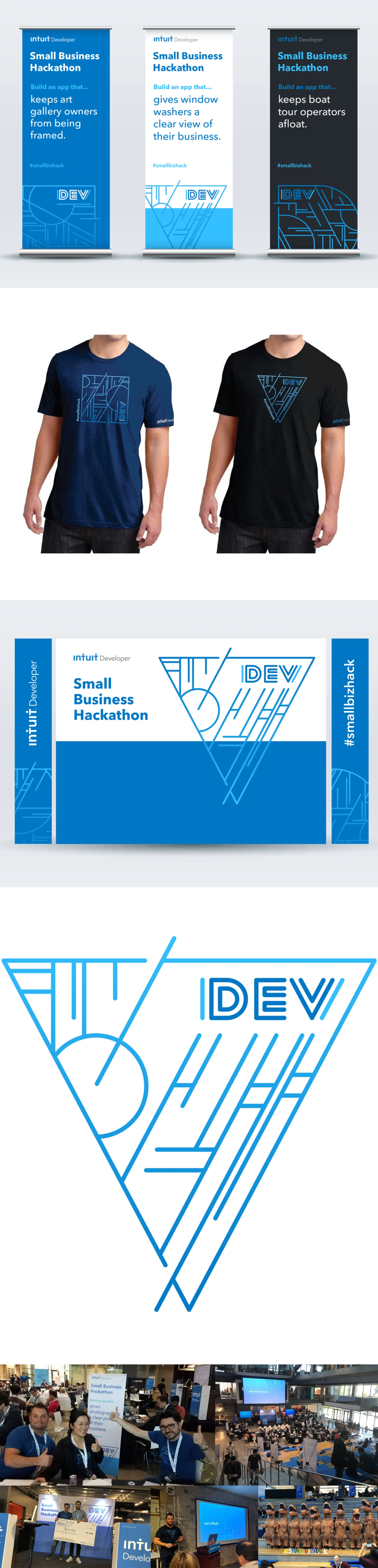 Craft the visual identity for print and digital executions in support of the Intuit Developer Group’s Small Biz Hack global event series - supported by a redesign of their event website from the ground up.