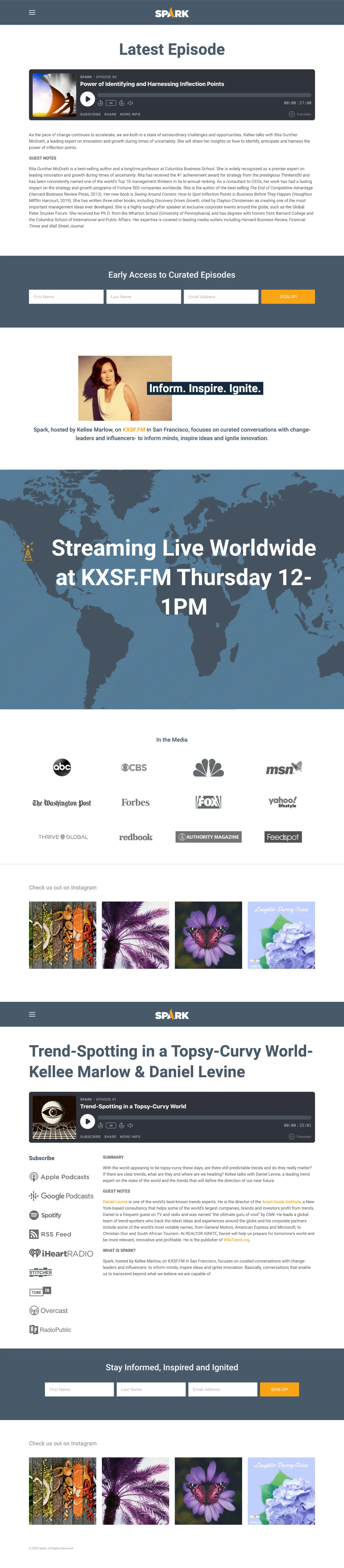 Spark is a successful radio talkshow that also live streams worldwide. We took that successful platform and took it digital by creating an even bigger audience by making it a weekly podcast that went out the same day it aired.