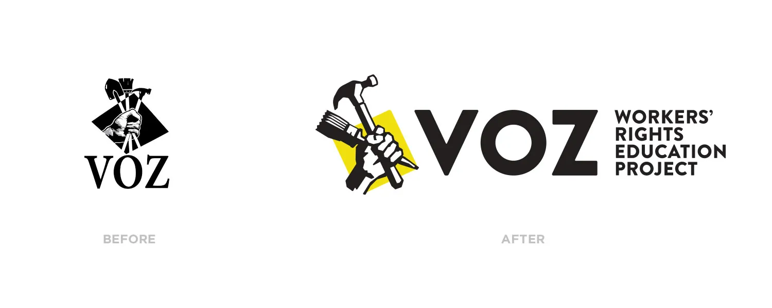 Turn Agency met with the leadership at Voz and conducted a survey of workers and staff. Everyone within the organization felt a close connection to the concept behind their existing logo (representing the strength and craftsmanship of the workers). Turn Agency helped them take the legacy brand to the next level by recrafting the logo artwork and incorporating a bright new color palette that helped emphasize the energy and vibrancy of the people at Voz.